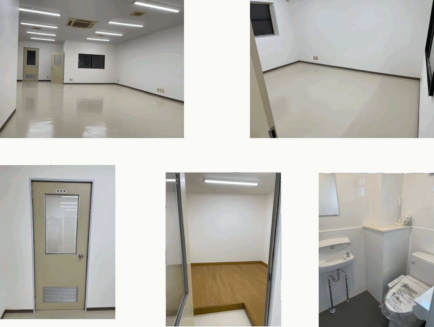 2階は倉庫と広い事務所スペースを備えており、事務所スペースは業務用エアコン完備で作業環境も快適です。